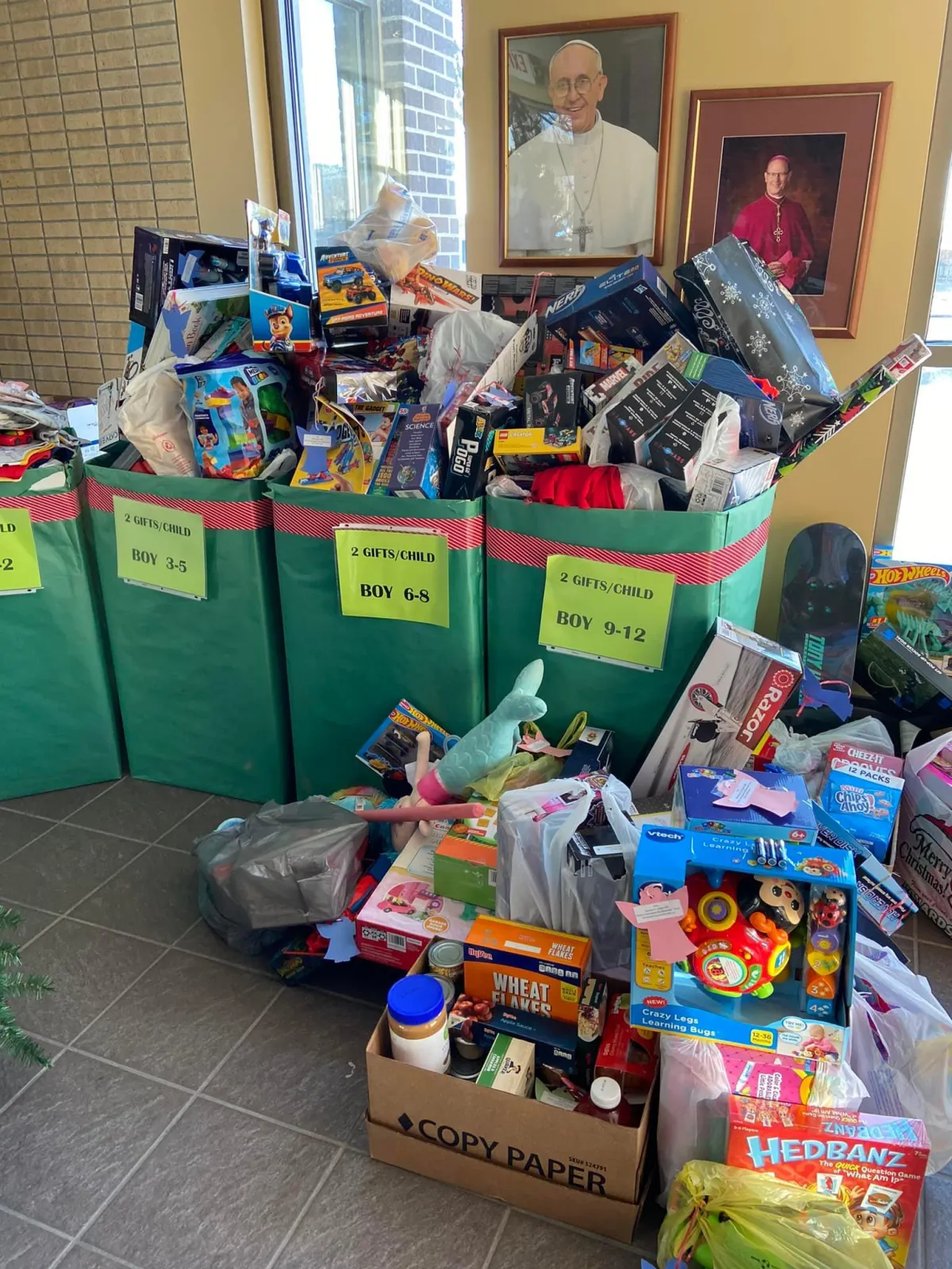 Parishioners from the Hastings area Catholic Churches, along with support from Catholic Social Services of Southern Nebraska, organize food and gifts for families in need in the Hastings area. A toy shoppe is set up with the donated gifts and parents are able to come and "shop" for 2 gifts for each of their children aged birth through 12 years old.
